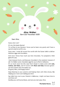 Our personalized letters and poems don’t just say their name. They create a world where your child becomes the hero of their own story and every piece is crafted just for them, shaped by their name, their quirks, their dreams and the things they love most.
