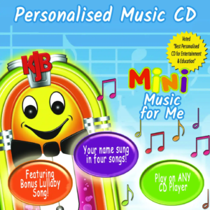 Mini KJB Music for Me is an English personalized CD featuring 4 custom songs that include your child’s name. Each track is upbeat, engaging and designed to introduce little ones to a variety of musical styles. Babies and young children love listening, singing and dancing to songs that call them by name — it creates a magical and joyful experience every time.