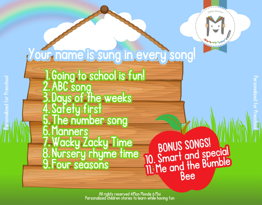 In this English personalised music CD, your child can prepare for preschool in a playful and engaging way. It’s a perfect tool to introduce early learning, rhythm, and a new language while having fun.