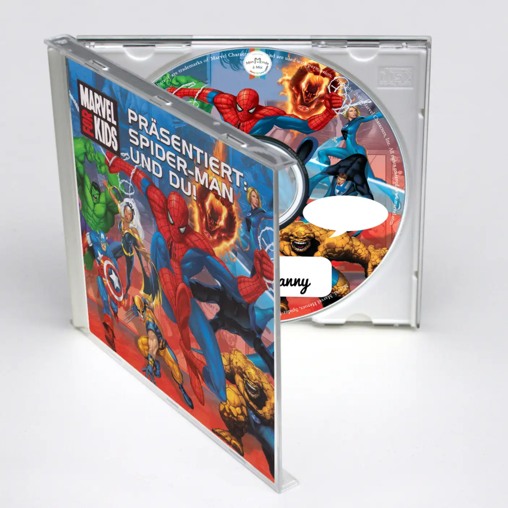 This music album in German – Spiderman und Du features 8 energetic, rhythmic and fully personalized songs with your child’s name. Each track celebrates Spiderman’s talent, courage and incredible powers — a guaranteed favorite among young superhero fans!